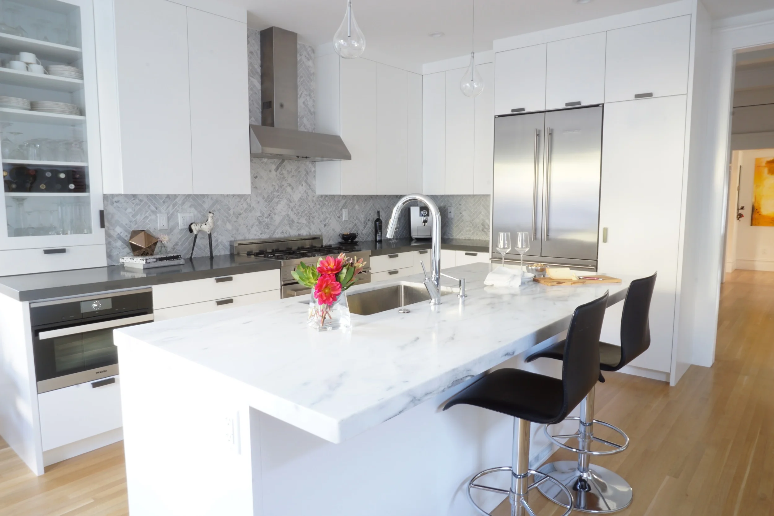 What was once a boxed in bedroom, we completely reinvented to accommodate an open, modern kitchen with plenty of space for entertaining.